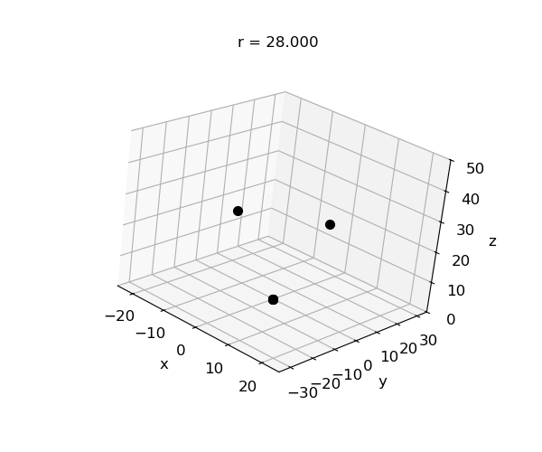 flow, the two trajectories are almost identical. Fig. 2. Chaotic region, r = 28. Animation